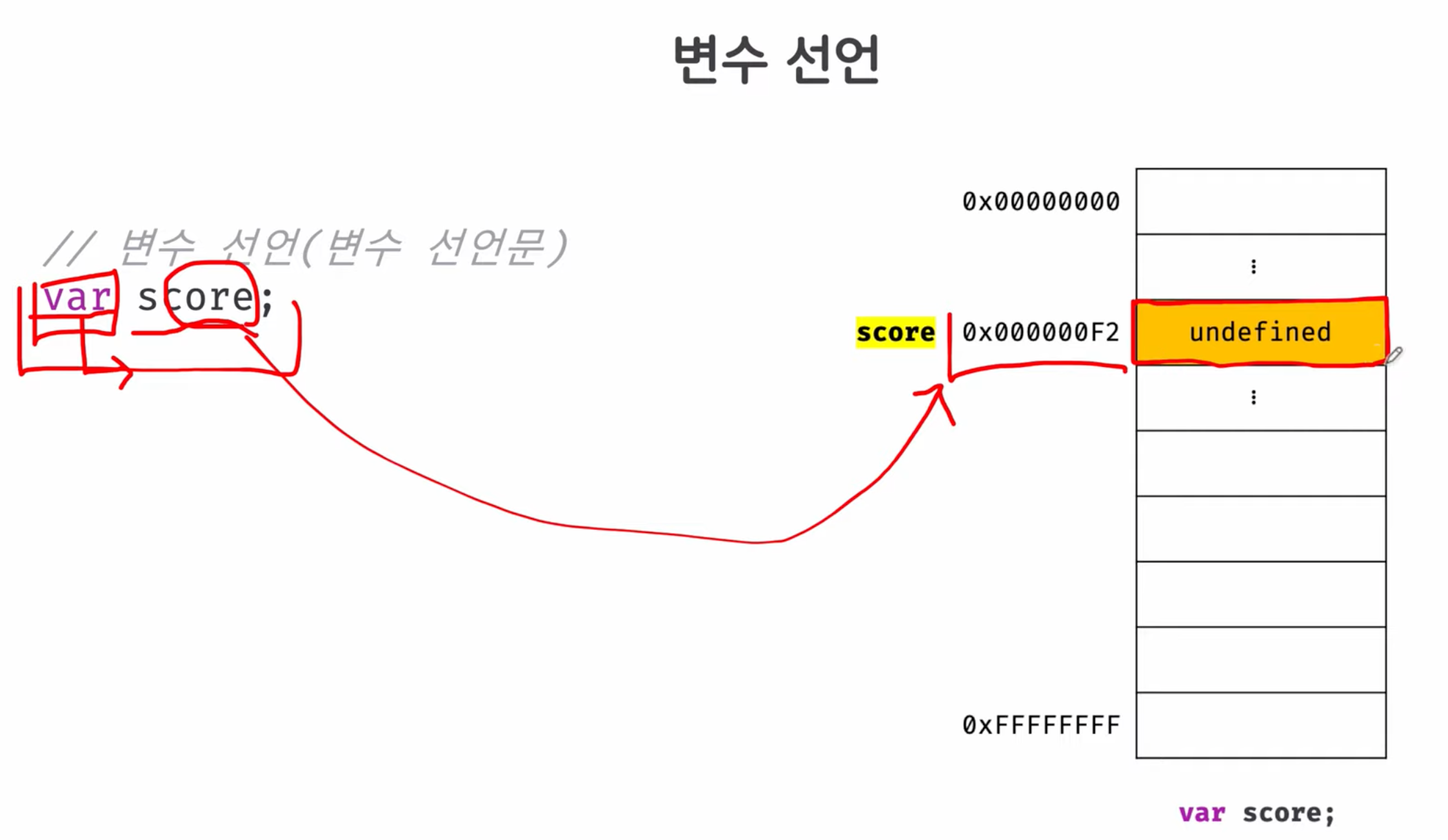 score는 변수명인데 이 메모리의 주소를 기억하게 됨. 변수를 선언했지만 값은 할당하지 않은 상태다.